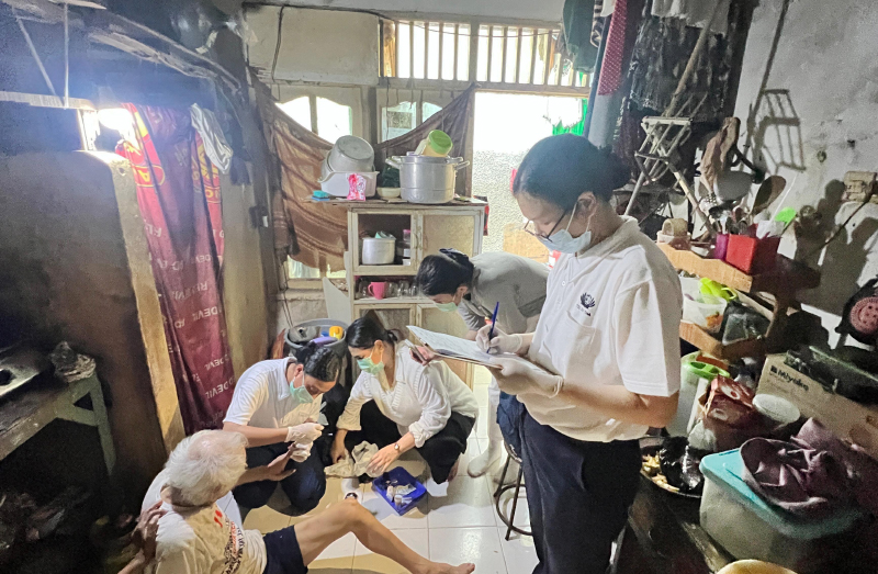 Tim medis dan dokter melakukan pemeriksaan langsung kepada pasien lansia dalam kunjungan home visit. Kehadiran mereka menghadirkan kepedulian yang menyentuh hingga ke rumah pasien.