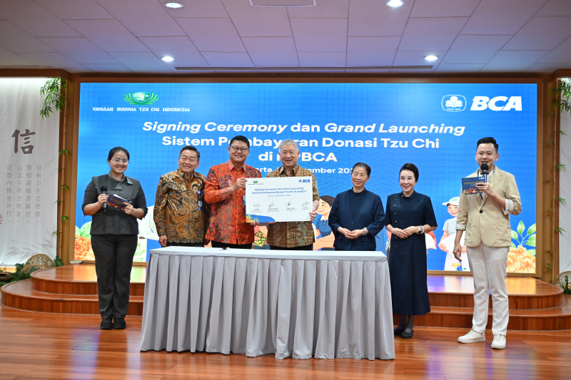 Ketua Yayasan Buddha Tzu Chi Indonesia Liu Su Mei menandatangani Perjanjian Kerja Sama (PKS) terkait perluasan kanal donasi melalui layanan digital banking dan donasi berbasis reward. Perjanjian penandatanganan ini diikuti oleh Wakil Ketua Sugianto Kusuma, Direktur BCA Santoso Liem, dan Wakil Presiden Direktur BCA Jhon Kosasih disaksikan oleh Rebecca Halim.