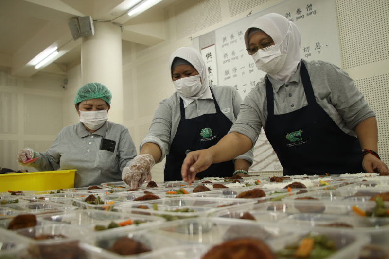 Sejak pagi hari, relawan Tzu Chi Bandung berkumpul untuk menyiapkan 1.000 paket Nasi Cinta Kasih yang akan dibagikan kepada para pengendara di SPBU Panghegar.