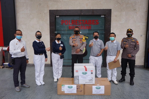 Seratus Ribu Buah Masker dan 4.000 Dus Obat Lianhua untuk Polda Sulawesi Selatan