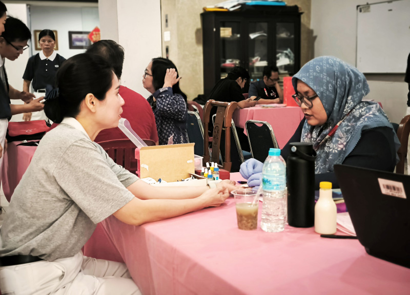 Pemeriksaan kesehatan calon pendonor dilakukan oleh dr. Merry Chris, yang telah mengabdikan diri dalam pelayanan donor darah selama 20 tahun sejak 2005. Dengan pengalaman panjangnya, dr. Merry memastikan setiap pendonor berada dalam kondisi sehat sebelum mendonorkan darah.