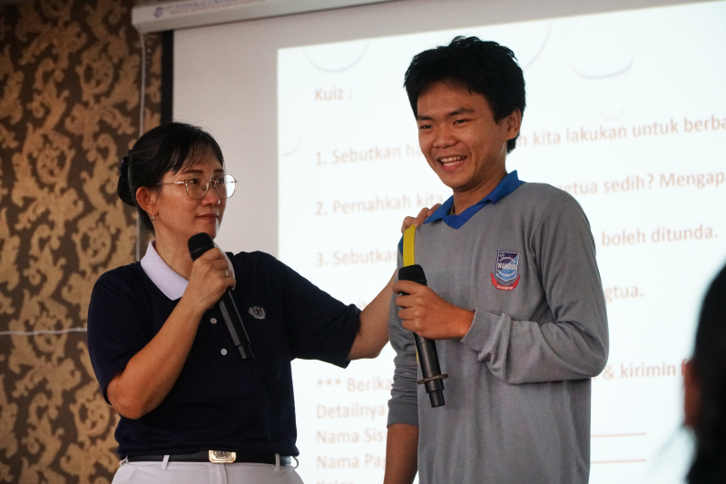 Sebagai penutup, relawan membagikan suvenir berupa notebook dan snack kepada seluruh siswa-siswi yang hadir. Para relawan juga berharap kegiatan ini bisa membawa manfaat yang mendalam, dan menjadi bekal bagi siswa-siswi untuk mempraktikkan bakti kepada orang tua dalam kehidupan sehari-hari.