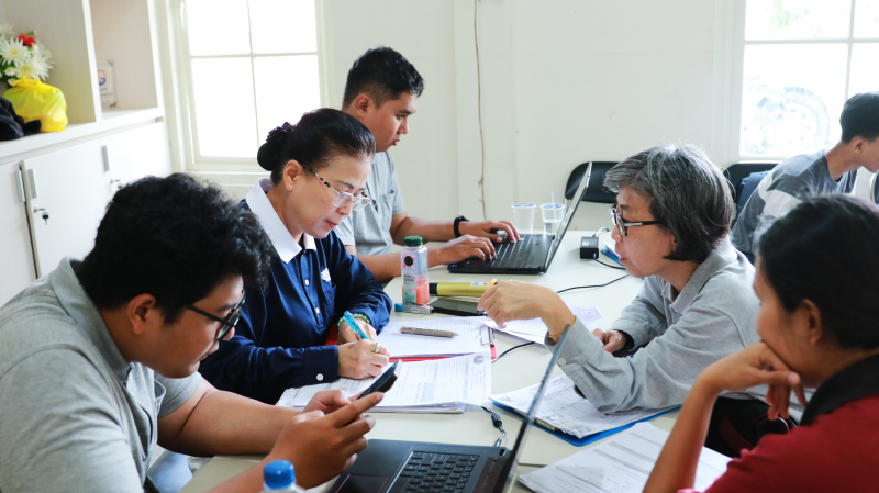 Relawan Tzu Chi kembali ke kelurahan setelah survei lapangan untuk melakukan laporan dan pembahasan awal guna menentukan rumah yang akan dibantu melalui Program Bebenah Kampung.