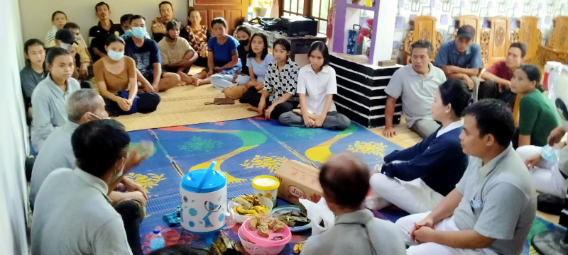 Susi (tengah, berkemeja putih) ketika masih di kampung halamannya di Dusun Pakan, Desa Caokng. Susi tampak mendengarkan sosialisasi tentang kegiatan Tzu Chi bersama beberapa keluarga desa. Dari pertemuan sederhana inilah benih cinta kasih dan cita-citanya untuk menjadi perawat mulai tumbuh.