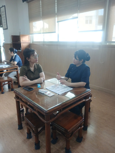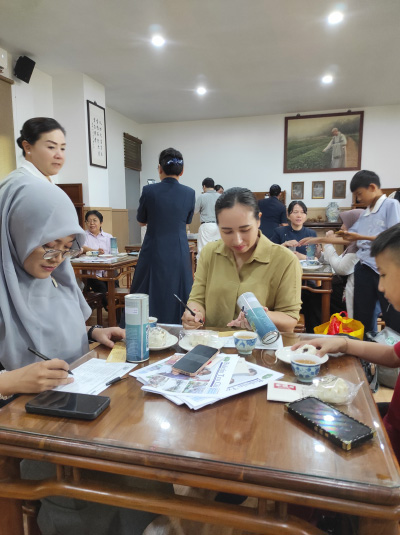 Hanny (berkemeja) dan Nona (berhijab) tampak serius mengisi formulir pendaftaran relawan. Dengan semangat dan tekad yang tulus, keduanya mengambil langkah awal untuk bergabung dalam keluarga besar relawan Tzu Chi.