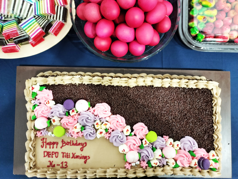 Pemotongan kue ulang tahun secara bersama-sama oleh relawan dengan diiringi lagu ulang tahun dan diikuti tepukan tangan meriah hadirin.