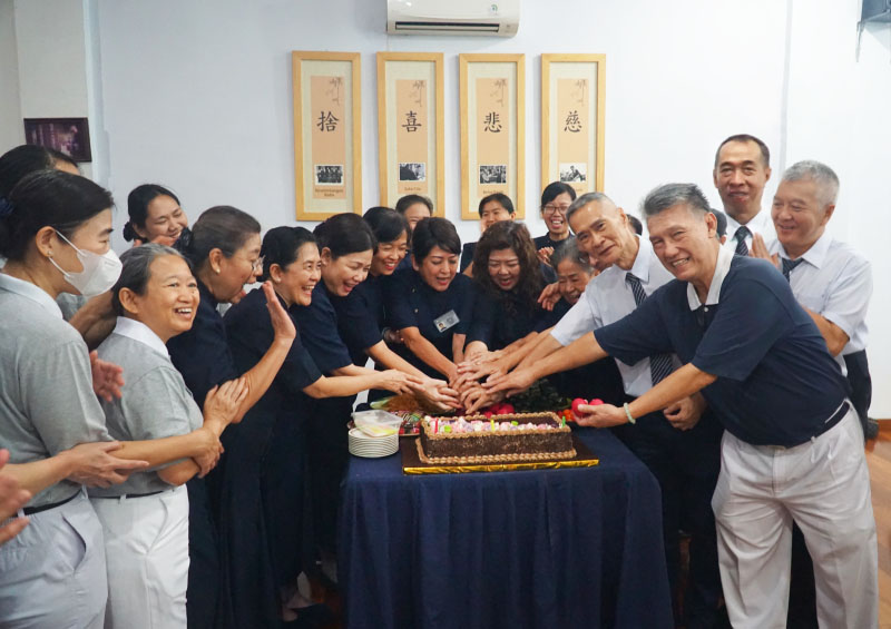 Puncak acara adalah pemotongan kue ulang tahun secara bersama-sama oleh relawan dengan diiringi lagu ulang tahun dan diikuti tepukan tangan meriah hadirin. Acara ditutup dengan doa bersama, foto bersama dan makan siang bersama menikmati hidangan vegetarian yang disiapkan relawan tim konsumsi dengan kesungguhan hati dalam suasana kekeluargaan yang hangat. Semua makanan dan minuman merupakan donasi dari relawan dan donatur.