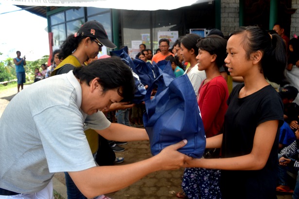 Bantuan tersebut berupa selimut, sarung, sabun, sampo, sikat, pasta gigi, ember, obat nyamuk, dan masker. Relawan juga ikut mendengar keluh kesah para pengungsi. Seperti yang dialami salah satu pengungsi, Wayan Berata.