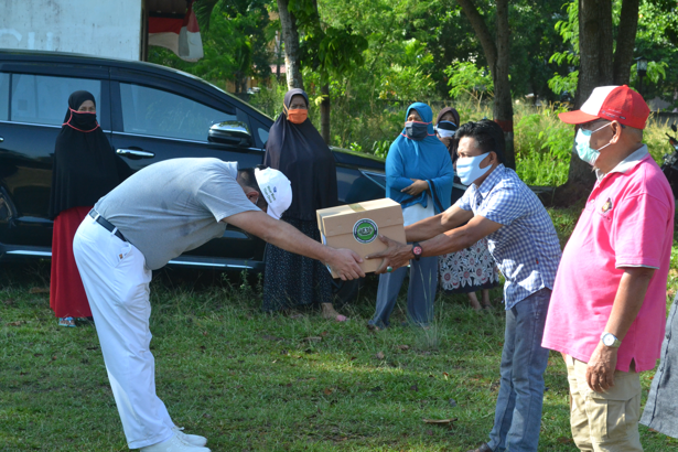 Komandan Militer (Danramil) 01/Rumbai Mayor Kav Suharman S.Pd menyerahkan paket bantuan secara simbolis kepada Ketua RT.