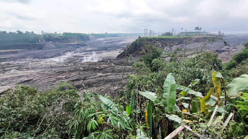 Kondisi wilayah pasca banjir lahar terlihat jelas pada Rabu (19/11/2025). Material vulkanik yang terbawa aliran lahar meninggalkan hamparan lumpur dan kerusakan di sepanjang jalur yang dilalui.
