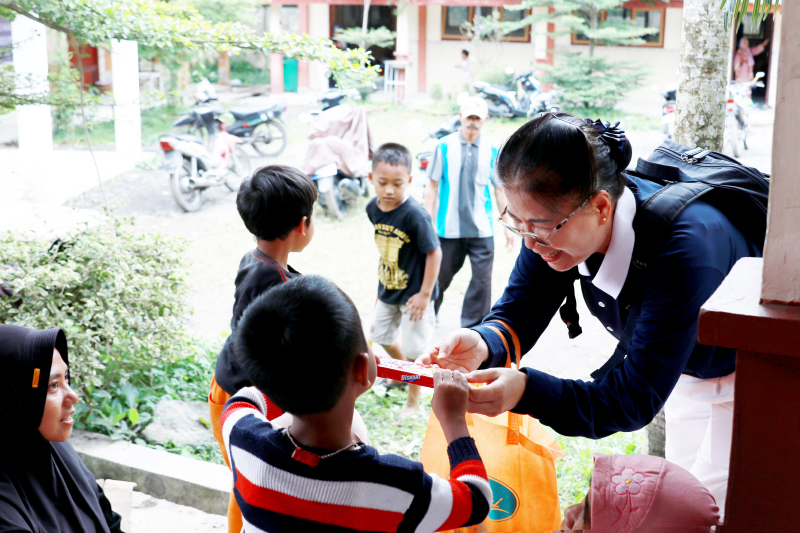 Deretan senyum lebar terlihat dari para relawan ketika membagikan biskuit kepada anak-anak di Pos Pengungsian SMPN 02 Pronojiwo. Meski sederhana, momen ini membawa sedikit kebahagiaan bagi anak-anak yang tengah berada dalam situasi sulit.