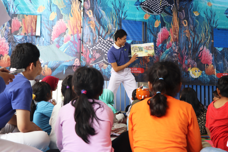 Anak-anak diajak untuk mendengarkan cerita yang dibawakan oleh Tzu Ching.