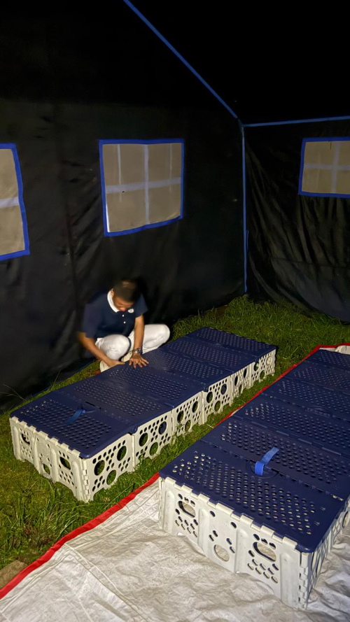 Bantuan sementara yang telah disalurkan relawan adalah meminjamkan 10 unit ranjang lipat dan memberikan pakaian layak pakai.