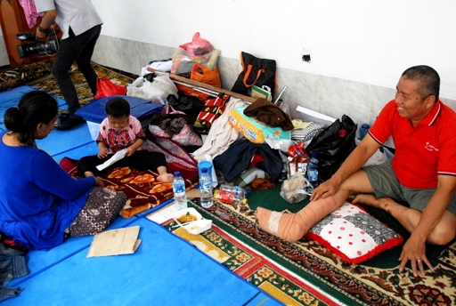 Indra bersama keluarganya sementara ini tinggal bersama para tetangga di pengungsian, di Mushala Muminin, Jalan Rawa Kepa Utama, Tomang. Untuk sementara ini, Indra tidak bisa banyak melakukan aktivitas karena kakinya retak setelah melompat dari lantai dua rumahnya.