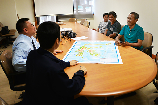 Wali Kota Palu Hidayat sedang menjelaskan kondisi kota Palu kepada Liu Su Mei Ketua Yayasan Buddha Tzu Chi dan Sugianto Kusuma.