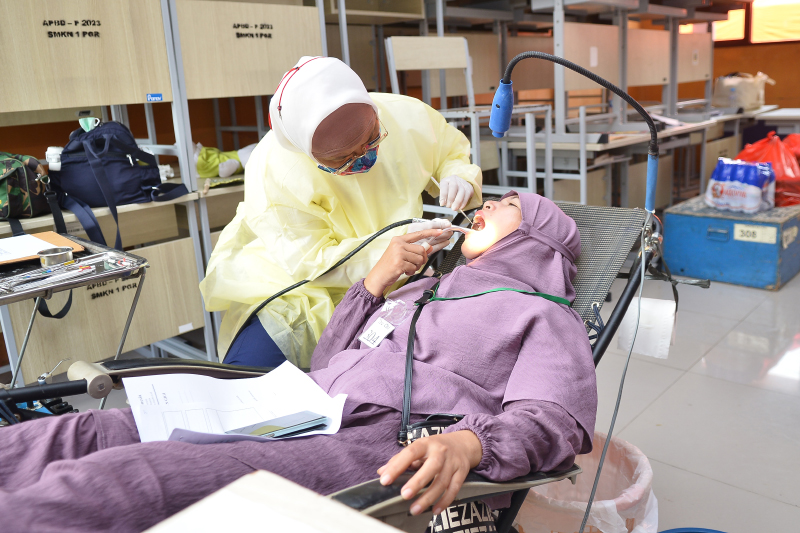 Dokter gigi TIMA, saat memeriksa kesehatan gigi Yuni salah satu pasien yang mendapat pelayanan pengobatan gigi.