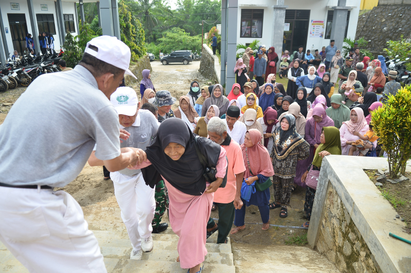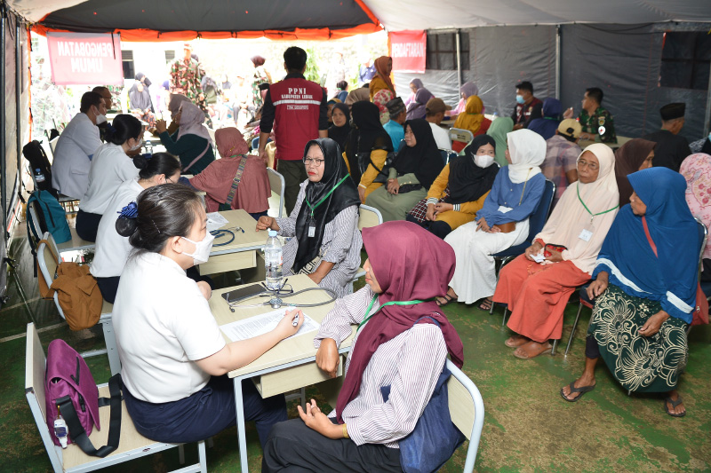 Dengan tertib pasien menunggu antrean pemeriksaan kesehatan yang dilakukan Tim Medis Gabungan dari TIMA dan TNI.