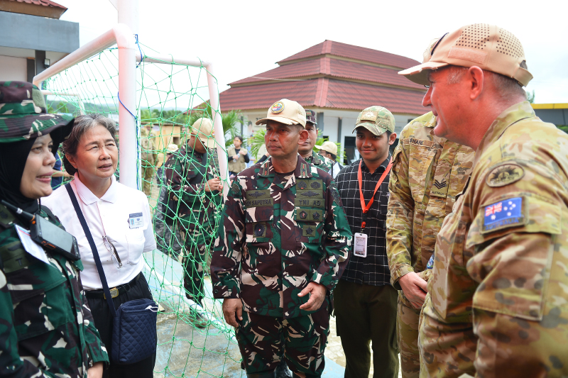 Danrem 064/Maulana Yusuf, Brigjen TNI Edi Saputra S.I.P., M.Han (tengah), bersama relawan TIMA dan Prajurit Australian Defence Force (ADF) berkoordinasi mengenai penyelenggaraan baksos kesehatan.