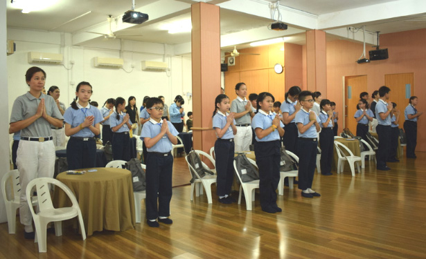 Sebelum memulai kegiatan, para peserta kelas budi pekerti memberikan penghormatan kepada Master Cheng Yen.