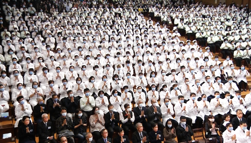 Saya sangat bersyukur bisa melihat begitu banyak perawat dan dokter. Kalian sungguh mengagumkan. Setiap orang memperlakukan pasien dengan hati tertulus. Dalam acara Pemberkahan Akhir Tahun, kalian juga berdoa bersama dengan hati yang tulus. Kekuatan cinta kasih seperti ini hendaknya kita promosikan setiap hari.