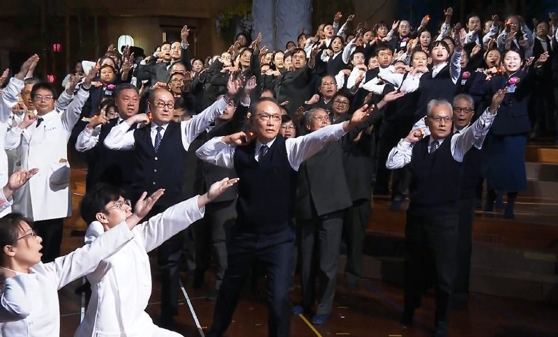 “Dalam rangka 60 tahun Tzu Chi, Empat Misi Tzu Chi bersama-sama membangkitkan tekad dan ikrar. Semoga Master panjang umur dan senantiasa membabarkan Dharma.